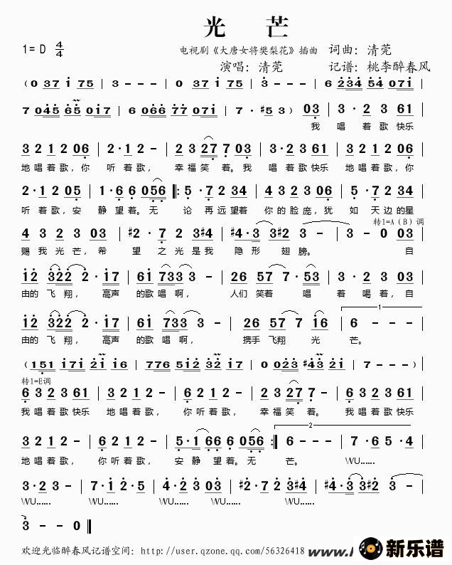 《光芒(电视剧《大唐女将樊梨花》插曲)》简谱 清莞-桃李醉春风制谱