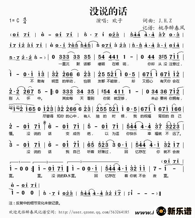 《没说的话》简谱 欢子-桃李醉春风制谱