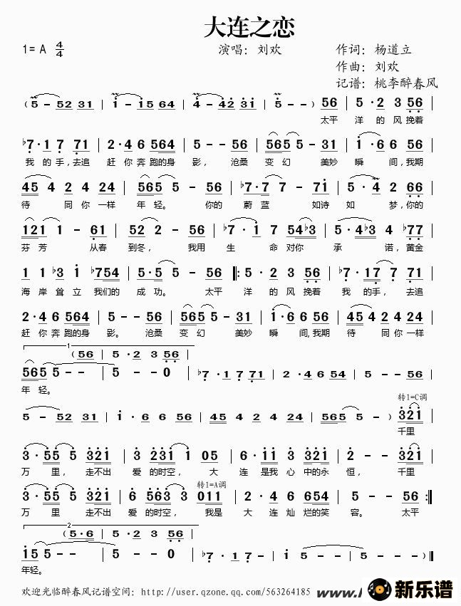 《大连之恋》简谱 刘欢-桃李醉春风制谱