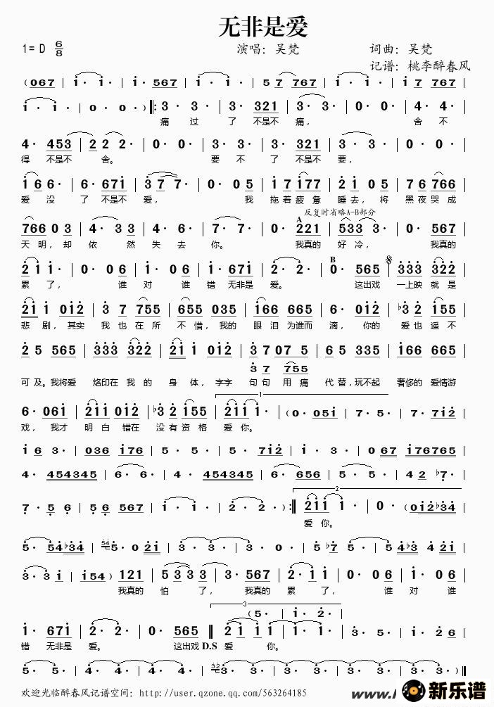 吴梵演唱的无非是爱歌词,无非是爱简谱.