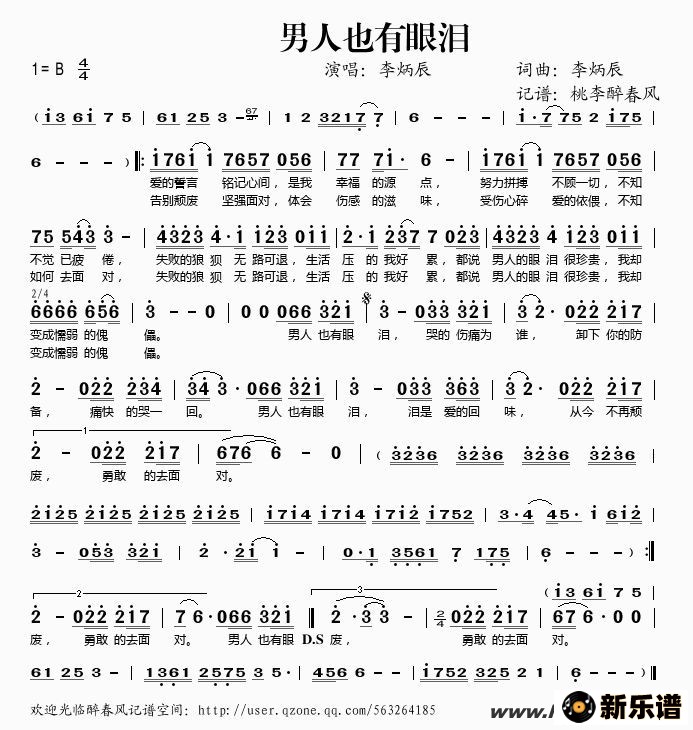 李炳辰演唱的男人也有眼泪歌词,男人也有眼泪简谱.