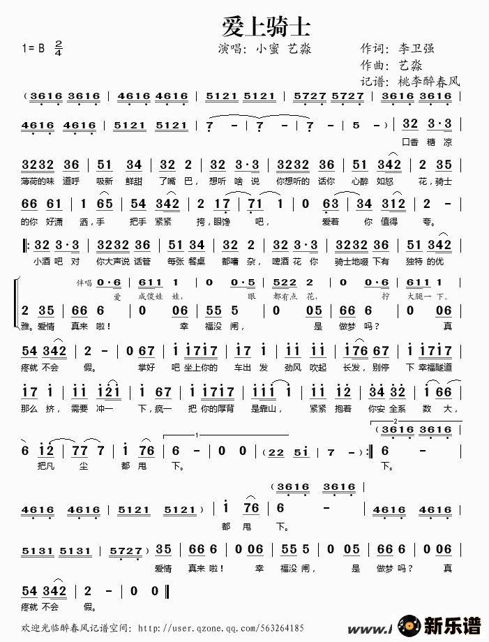 《爱上骑士》简谱 小蜜/艺淼-桃李醉春风制谱