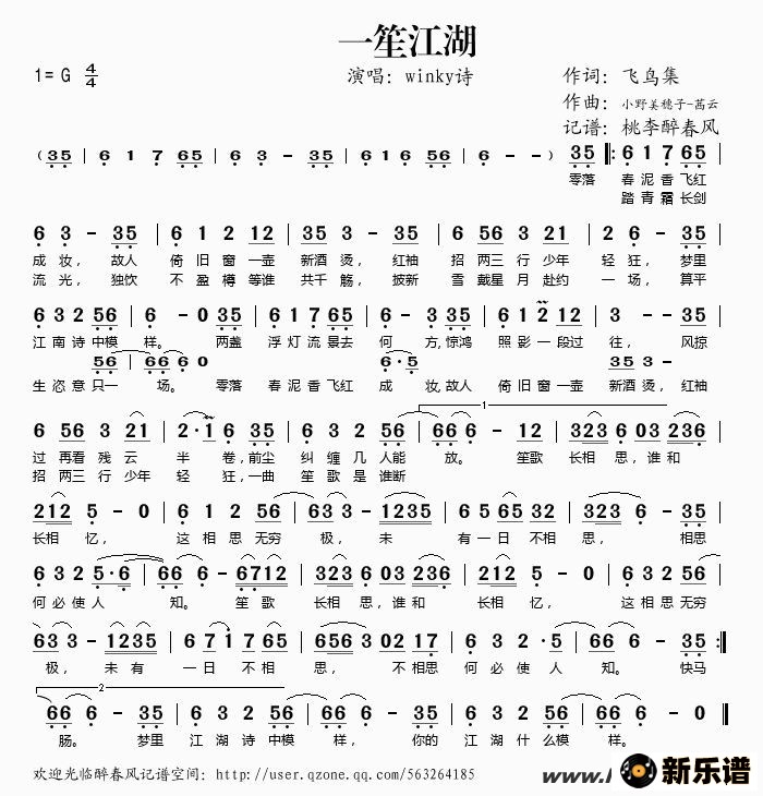 《一笙江湖》简谱 winky诗-桃李醉春风制谱