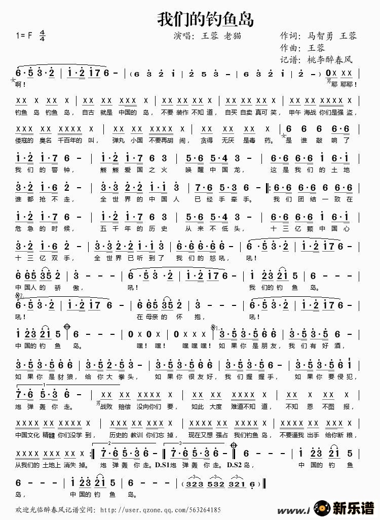 王蓉、老猫演唱的我们的钓鱼岛歌词,我们的钓鱼岛简谱.