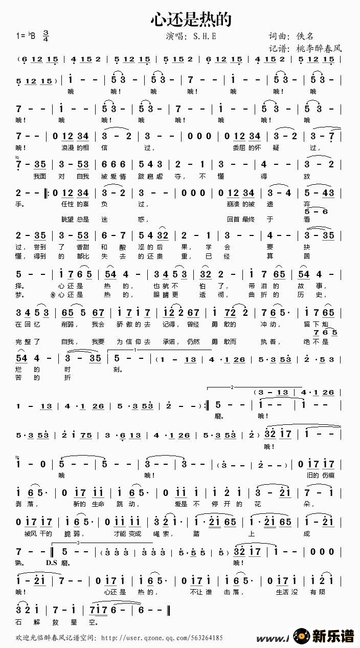 《心还是热的》简谱 S.H.E-桃李醉春风制谱