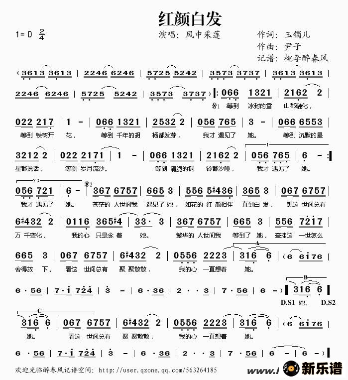 > 红颜白发简谱