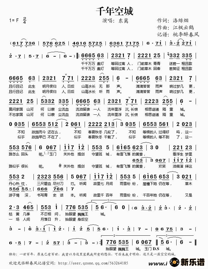 东篱演唱的千年空城歌词,千年空城简谱.