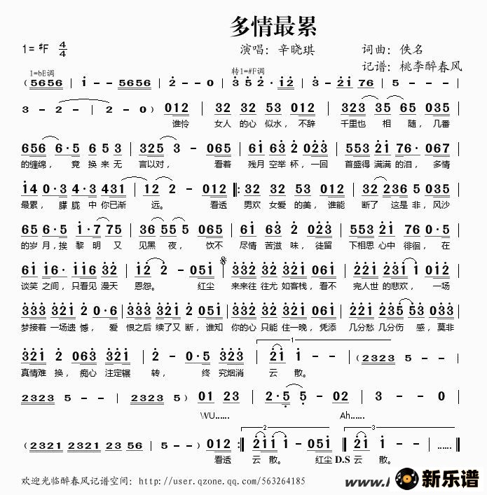 《多情最累》简谱 辛晓琪-桃李醉春风制谱