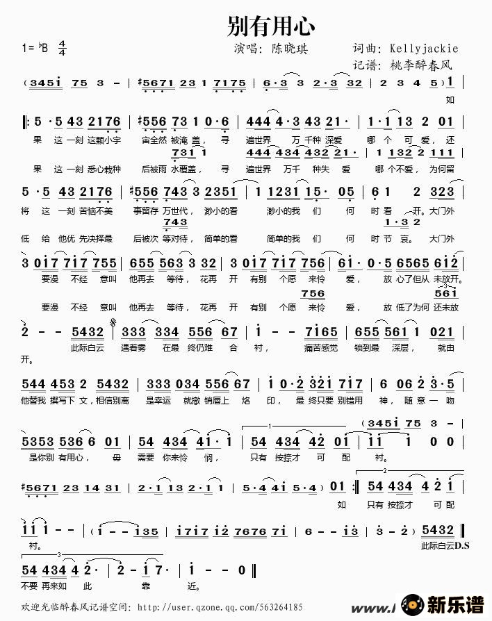 《别有用心》简谱 陈晓琪-桃李醉春风制谱