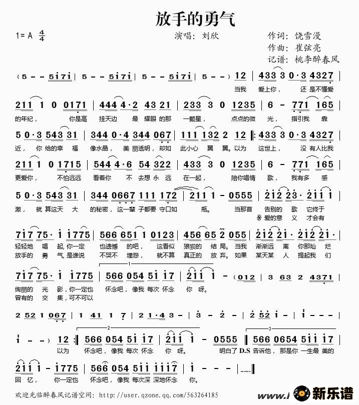 《放手的勇气》简谱 刘欣-桃李醉春风制谱