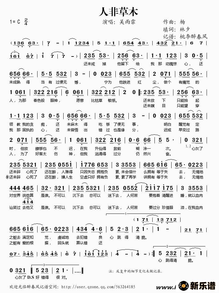 人非草木简谱