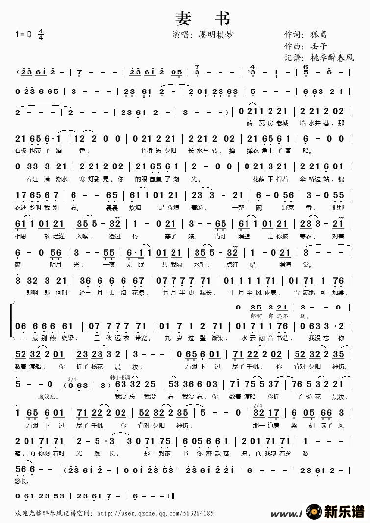 《妻书》简谱 墨明棋妙-桃李醉春风制谱