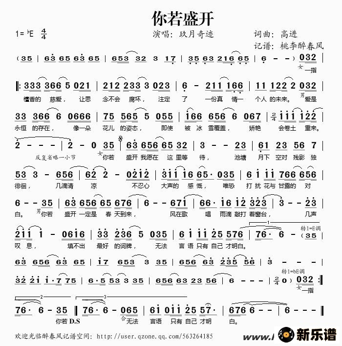 玖月奇迹演唱的你若盛开歌词,你若盛开简谱.