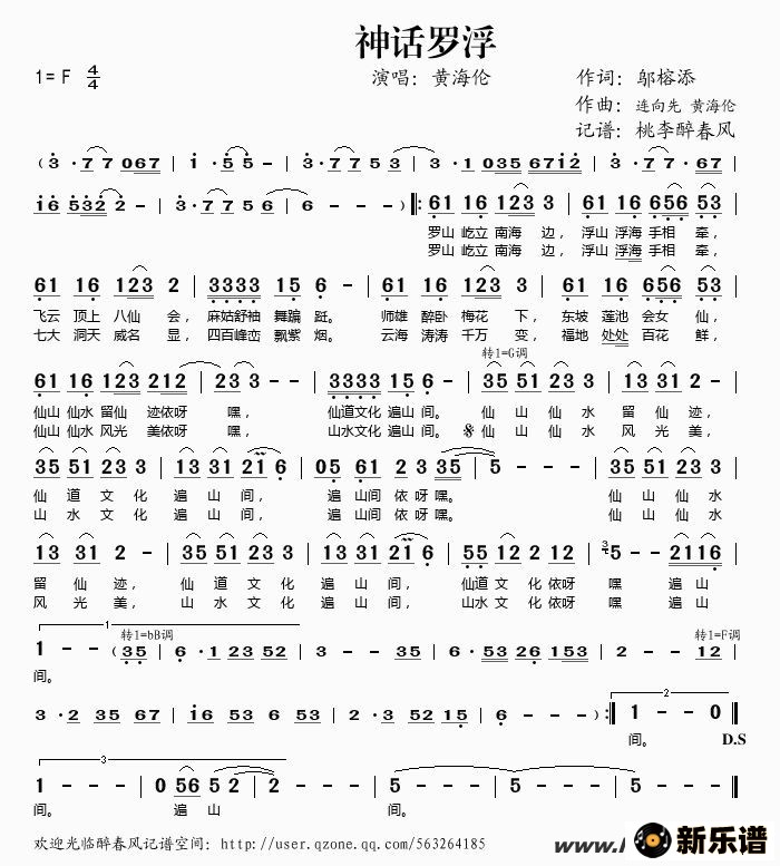 黄海伦演唱的神话罗浮歌词,神话罗浮简谱.