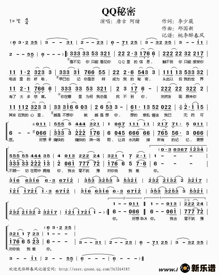 《qq秘密》简谱 唐古/阿绪-桃李醉春风制谱