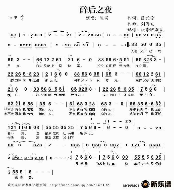 《醉后之夜》简谱 陈瑞-桃李醉春风制谱