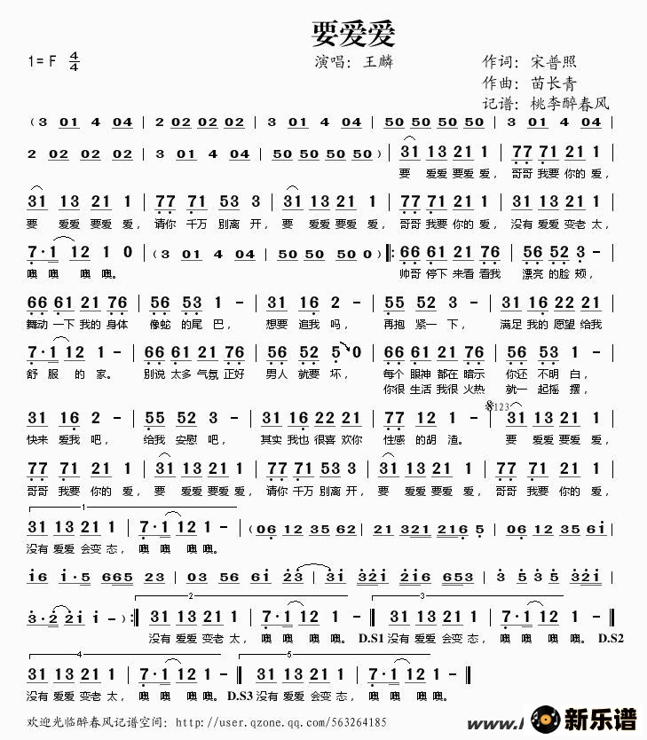 王麟演唱的要爱爱歌词,要爱爱简谱.