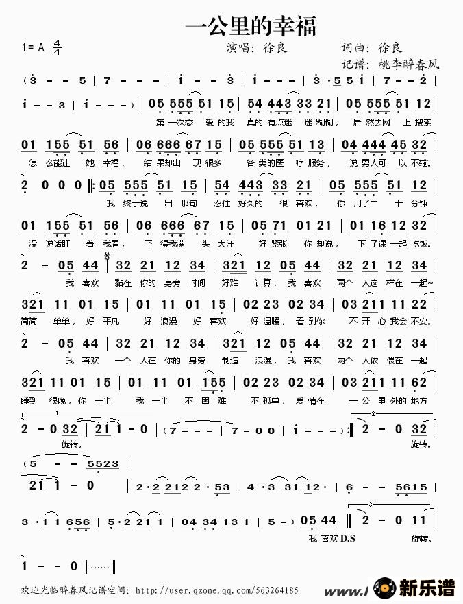 《一公里的幸福》简谱 徐良-桃李醉春风制谱