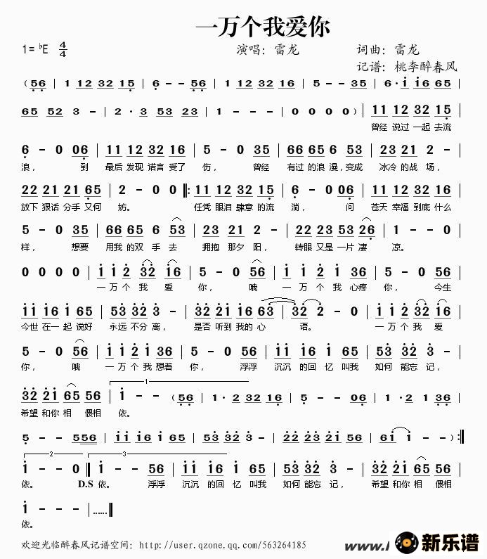 《一万个我爱你》简谱 雷龙-桃李醉春风制谱