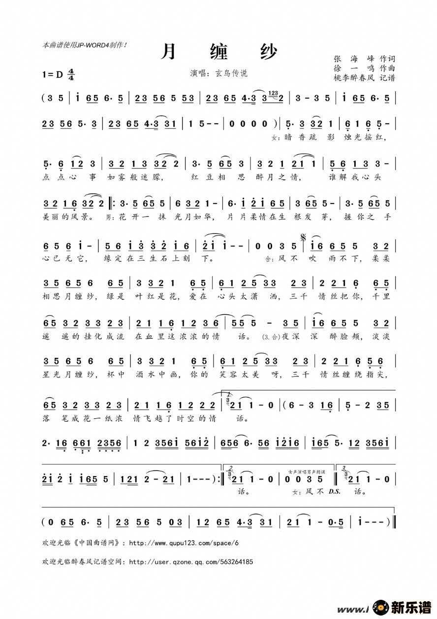 《月缠纱》简谱 玄鸟传说-桃李醉春风制谱