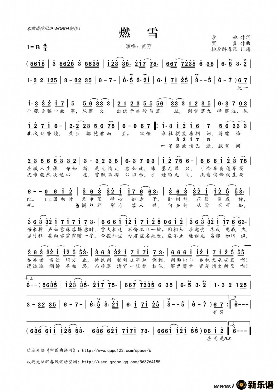 《燃雪》简谱 贰万-桃李醉春风制谱