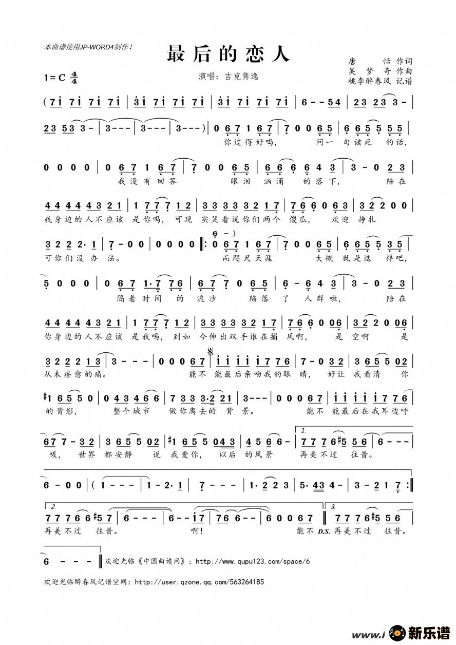 《最后的恋人》简谱 吉克隽逸-桃李醉春风制谱