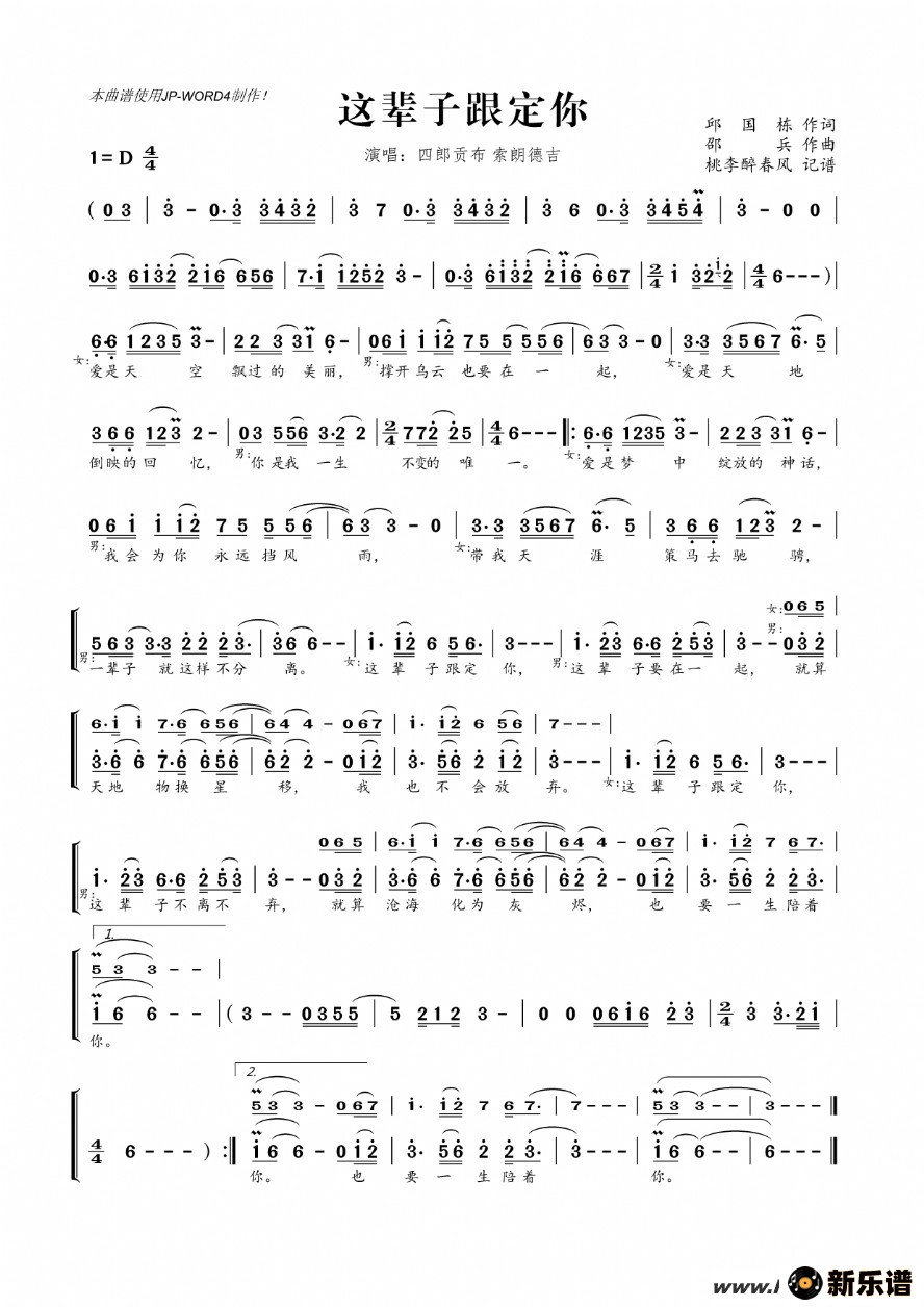 这辈子跟定你/索朗德吉/四郎贡布 相关曲谱