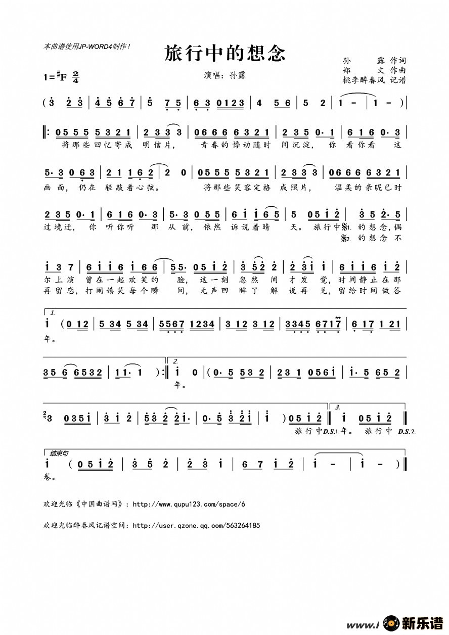 《旅行中的想念》简谱 孙露-桃李醉春风制谱