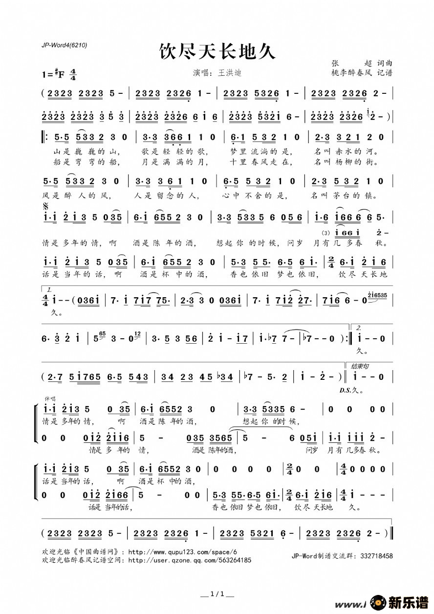 《饮尽天长地久》简谱 王洪迪-桃李醉春风制谱