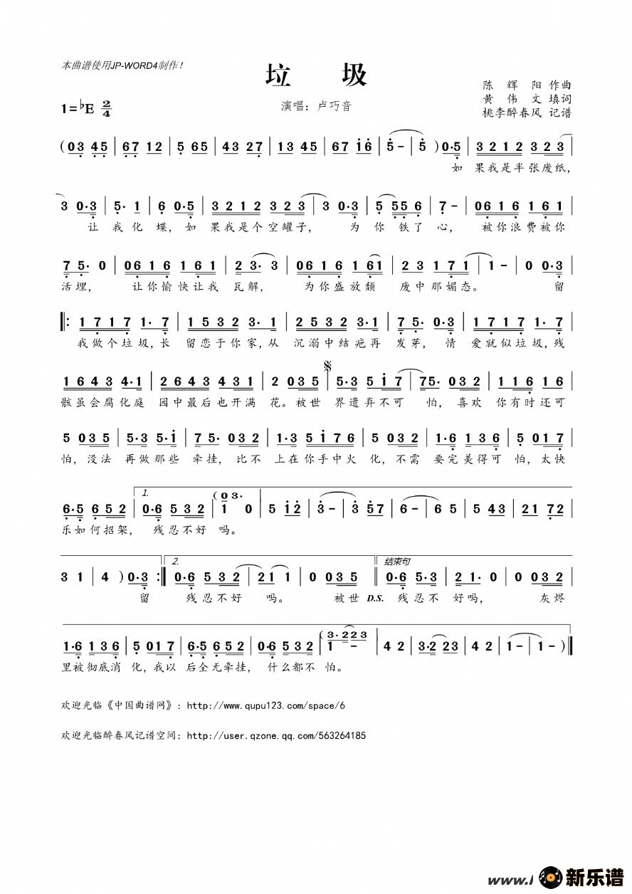 《垃圾》简谱 卢巧音-桃李醉春风制谱