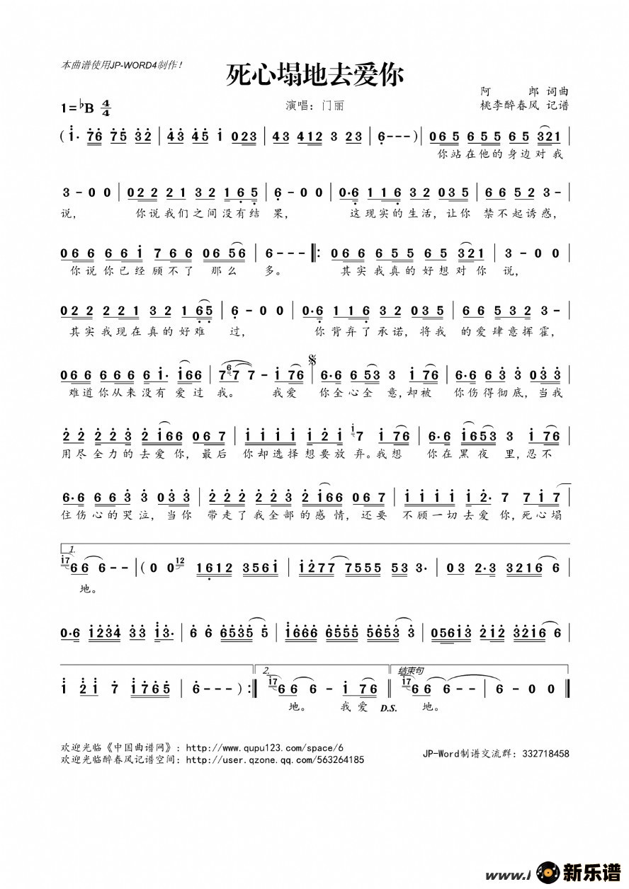 《死心塌地去爱你》简谱 门丽-桃李醉春风制谱