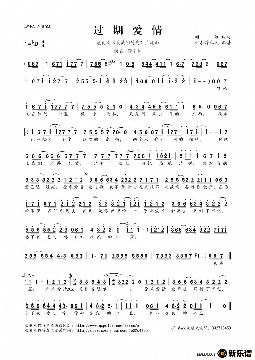 雨宗林演唱的过期爱情(电视剧《最美的时光》片尾曲)歌词,过期爱情(电视剧《最美的时光》片尾曲)简谱.