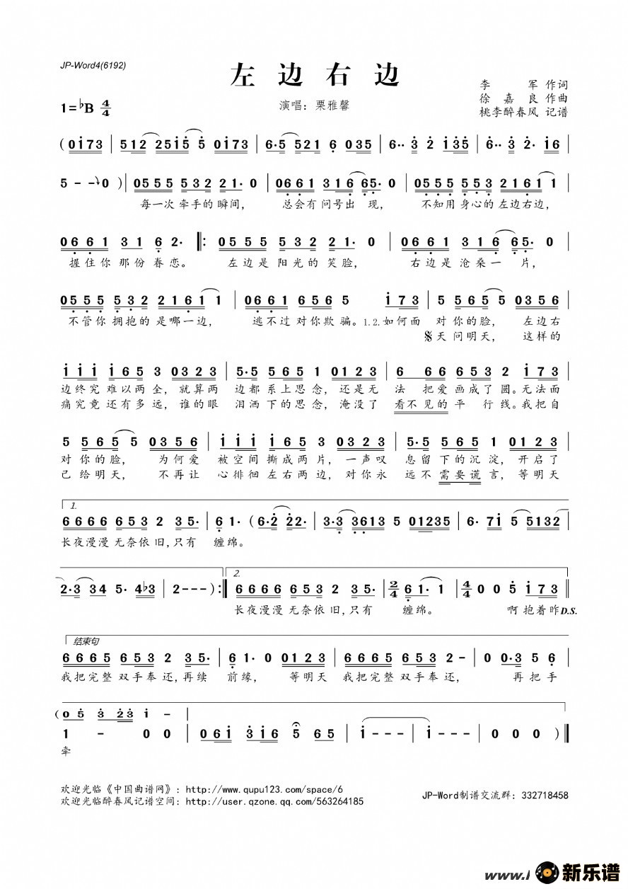 《左边右边》简谱 栗雅馨-桃李醉春风制谱