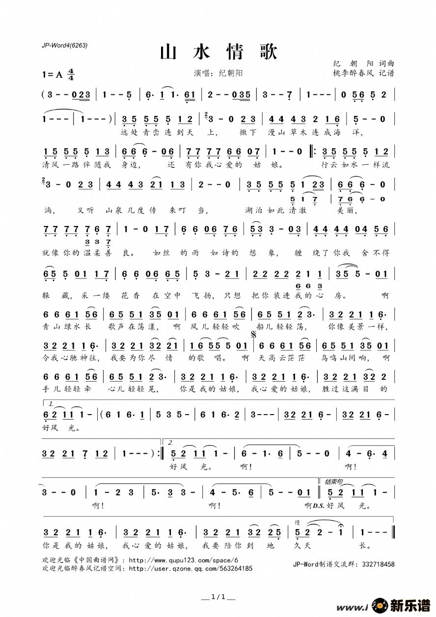 《山水情歌》简谱 纪朝阳-桃李醉春风制谱