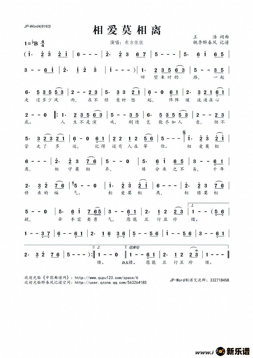 《相爱莫相离》简谱 东方依依-桃李醉春风制谱