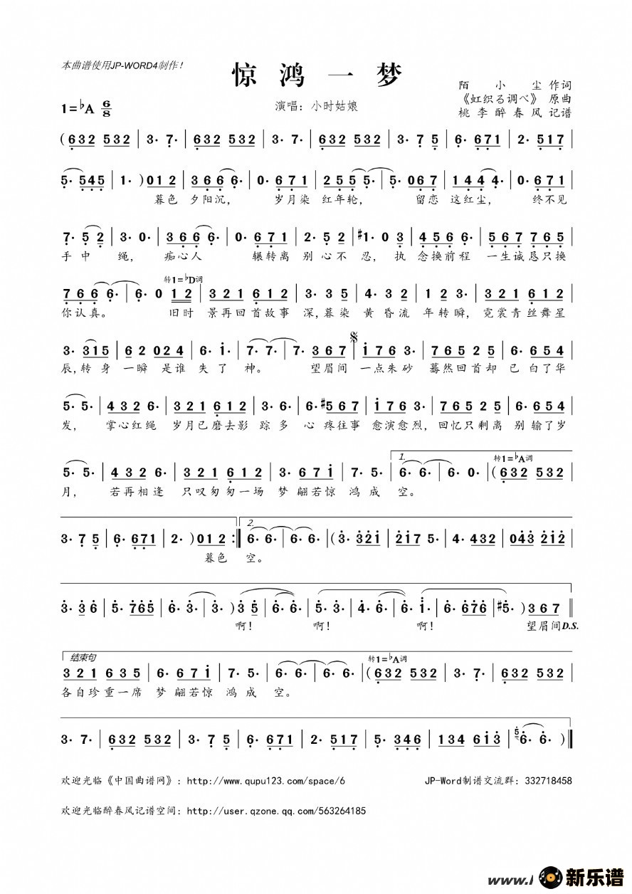 小时姑娘演唱的惊鸿一梦歌词,惊鸿一梦简谱.