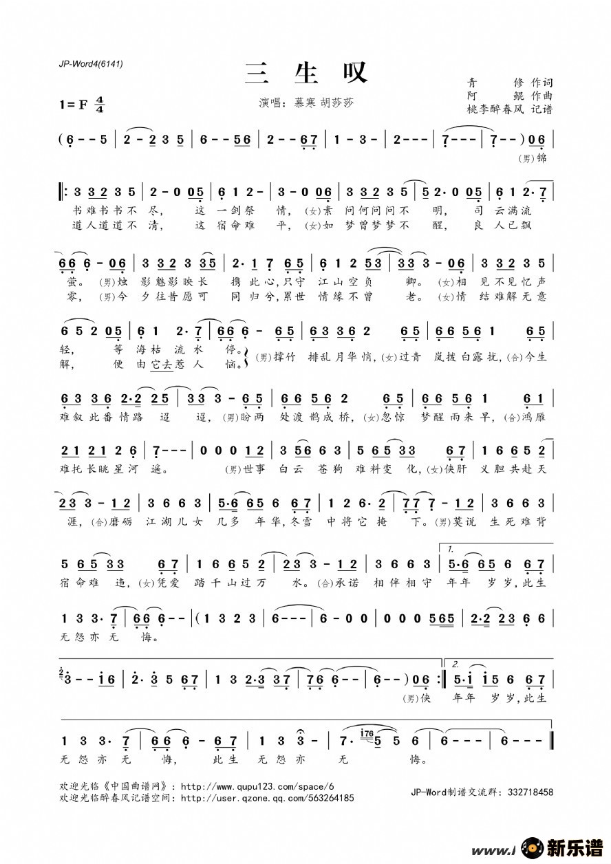 《三生叹》简谱 慕寒/胡莎莎-桃李醉春风制谱