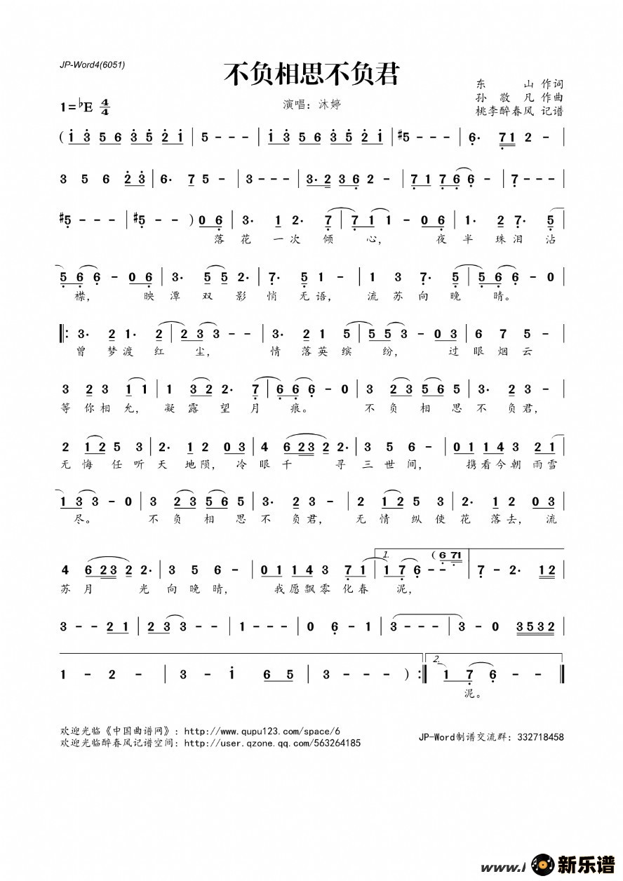 沐婷演唱的不负相思不负君歌词,不负相思不负君简谱.