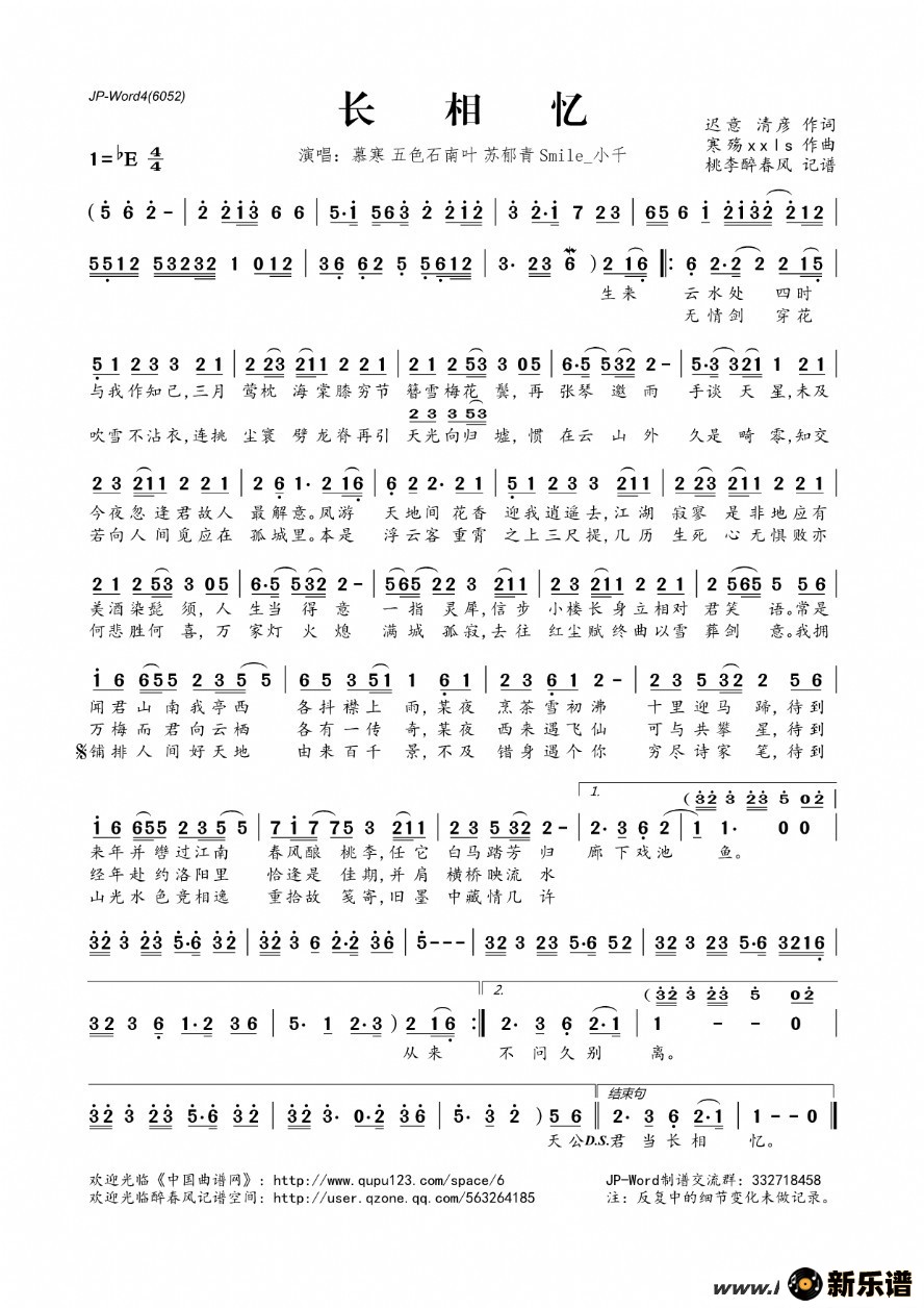 《长相忆》简谱 慕寒 、五色石南叶、苏郁青、Smile_小千-桃李醉春风制谱