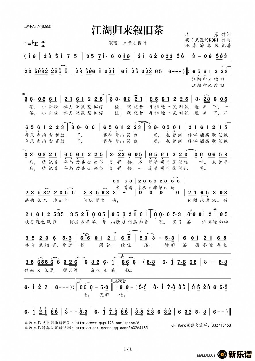 > 江湖归来续旧茶简谱