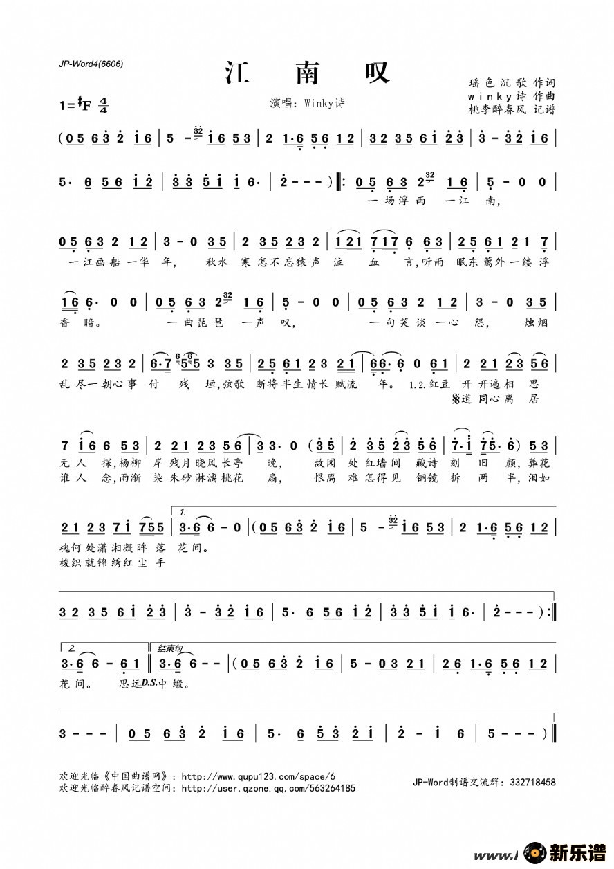 《江南叹》简谱 Winky诗-桃李醉春风制谱
