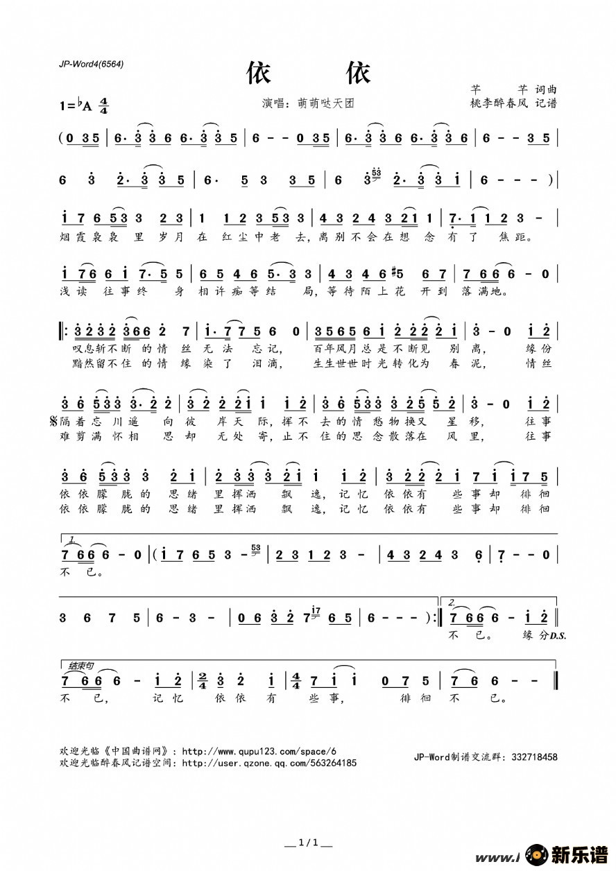 《依依》简谱 萌萌哒天团-桃李醉春风制谱