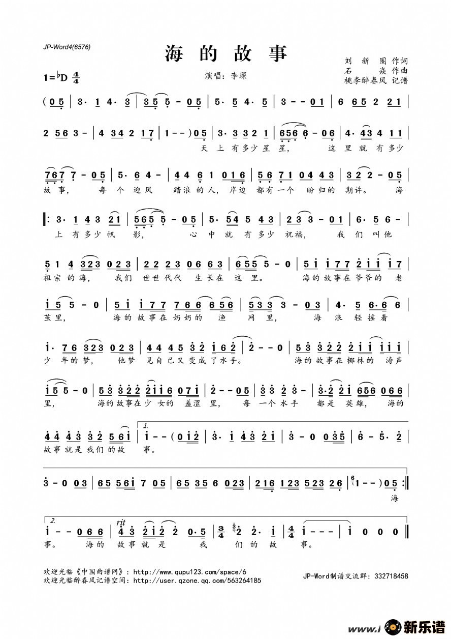 《海的故事》简谱 李琛-桃李醉春风制谱