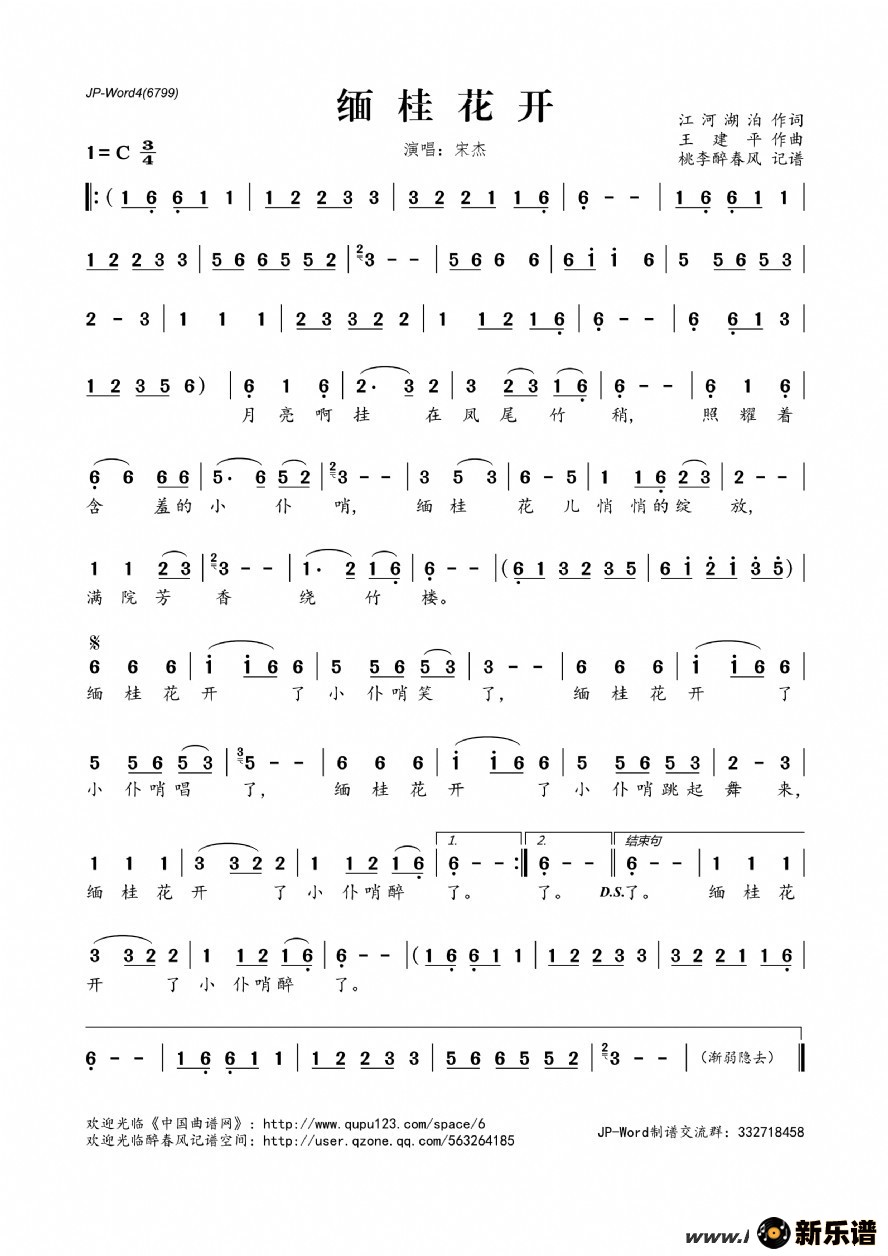 《缅桂花开》简谱 宋杰-桃李醉春风制谱