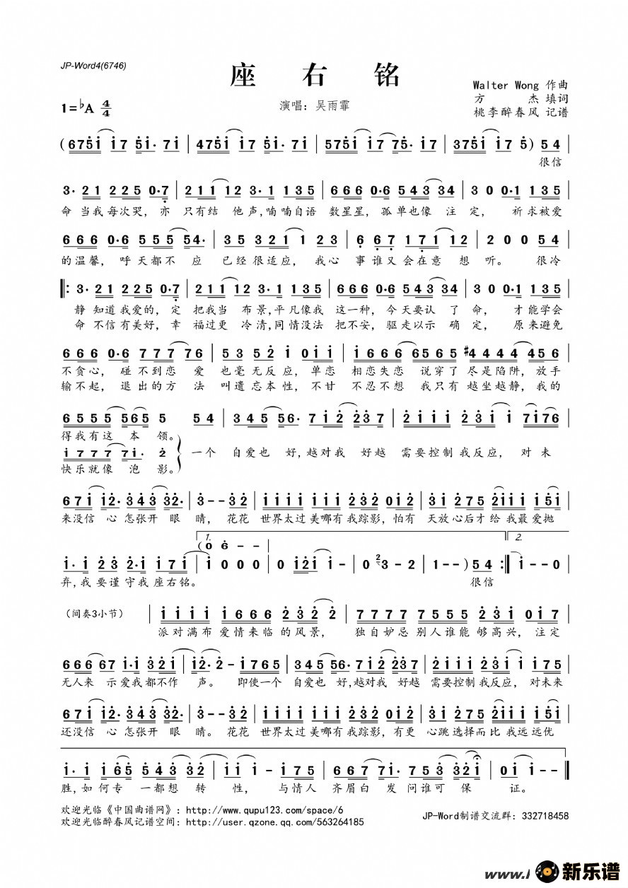 《座右铭》简谱 吴雨霏-桃李醉春风制谱