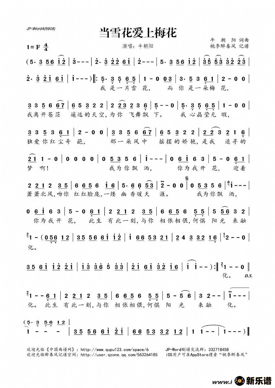 《当雪花爱上梅花》简谱 牛朝阳-桃李醉春风制谱