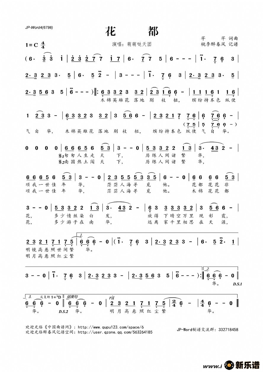 《花都》简谱 萌萌哒天团-桃李醉春风制谱