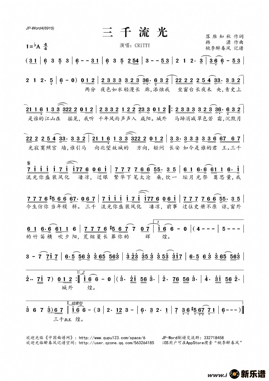《三千流光》简谱 CRITTY-桃李醉春风制谱