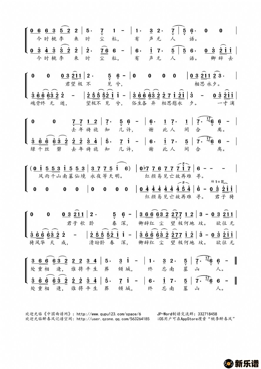 《谁将平生葬倾城》简谱 小魂/CRITTY-桃李醉春风制谱