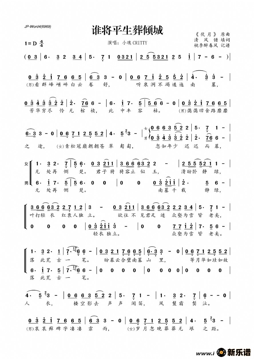 谁将平生葬倾城/小魂/CRITTY 相关曲谱